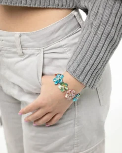 Das Armband – Black Silver hat eine schwarze Beschichtung und ist mit rechteckigen Strasssteinen verziert, welche silberfarben schimmern. Das Armband ist dehnbar, weshalb es jedem individuell passt.