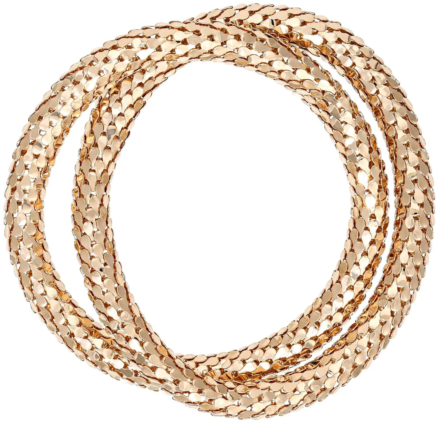 Das Armband – Mesh Duo besteht aus zwei goldfarbenen ArmbĂ€ndern im gleichen Design. Sie bestehen aus Metall und sind in der Mesh-Optik angefertigt. Die ArmbĂ€nder sind aneinander befestigt und kreuzen sich.