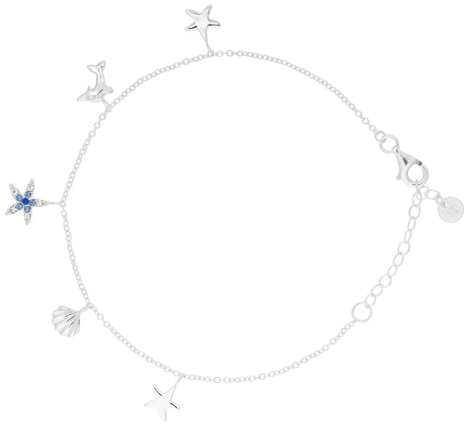 Das Armband – Ocean Silver schimmert silberfarben und besteht aus 925er Echtsilber. Das Gliederarmband hat fĂŒnf AnhĂ€nger, die alle einen Maritimen-Look haben. Ein Seestern ist mit funkelnden Cubic Zirkonia Steinen verziert.