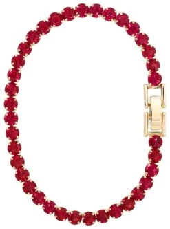Das Armband – Romantic Sparkle schimmert goldfarben und ist mit vielen Strasssteinen verziert. Die Strasssteine funkeln in einem edlen dunkelrot und ziehen alle Blicke auf sich. Das Tennisarmband schlieĂźt mit einem Scharnierverschluss.