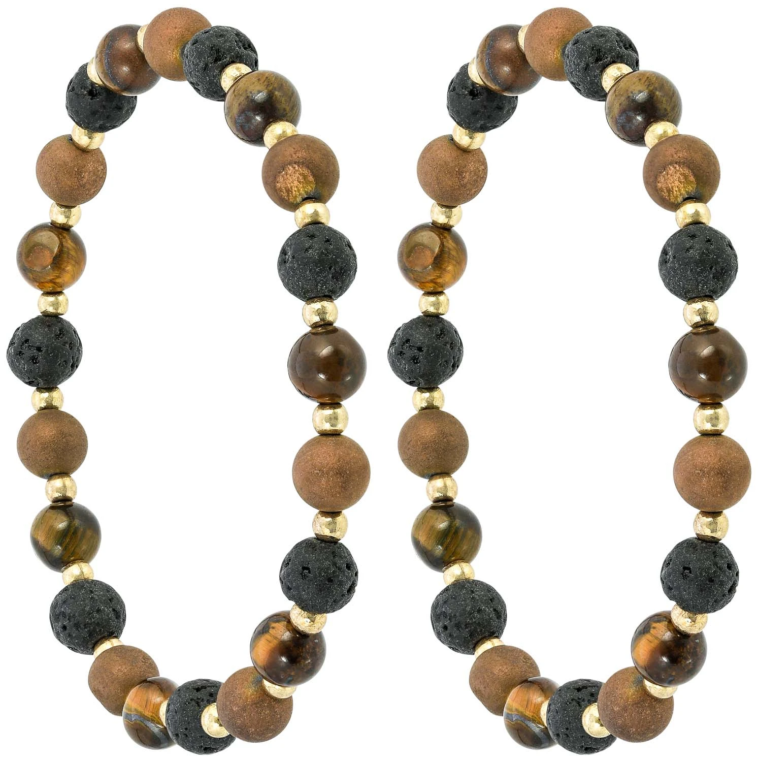 Das Armband-Set – Lava Stone besteht aus zwei ArmbĂ€ndern in gleichen Designs. Die ArmbĂ€nder sind schwarz und braun. Die ArmbĂ€nder besteht aus den echten Edelsteinen Tigerauge und Lavastein. Das Armband-Set ist dehnbar, damit es dich individuell anpasst.