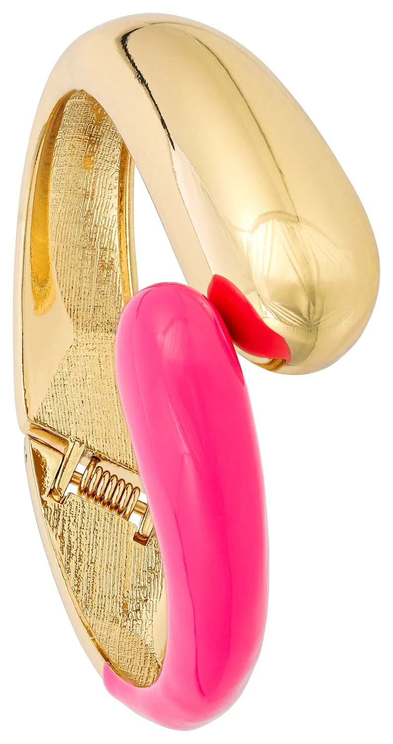 Das Armband – Shiny Fuchsia ist ein Scharnierarmband, welches zur HĂ€lfte in Pink und zur HĂ€lfte in goldfarben glĂ€nzt.