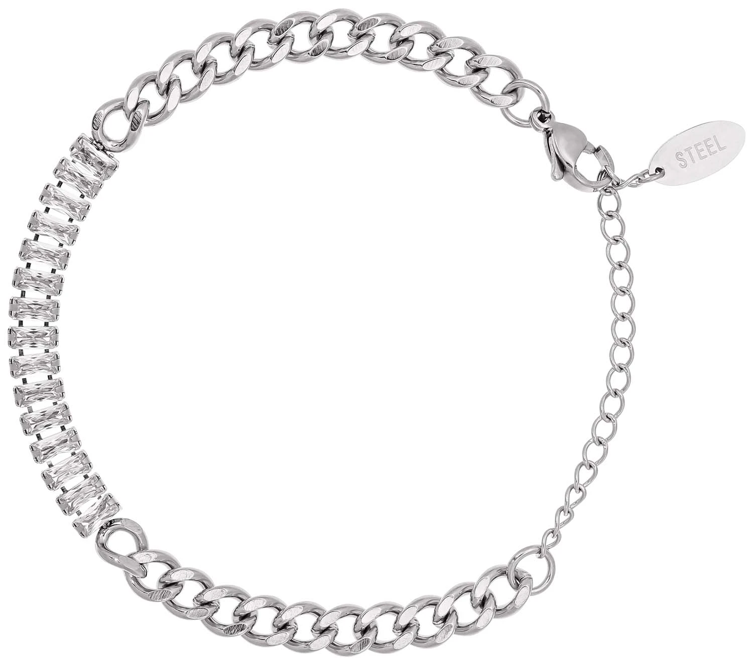 Das Armband – Sparkling Steel schimmert silberfarben und besteht aus Edelstahl. Das Armband ist ein Panzerarmband und ist in seiner Mitte mit rechteckigen Strasssteinen verziert. Das Armband lĂ€sst sich perfekt mit funkelnden Ohrringen kombinieren.