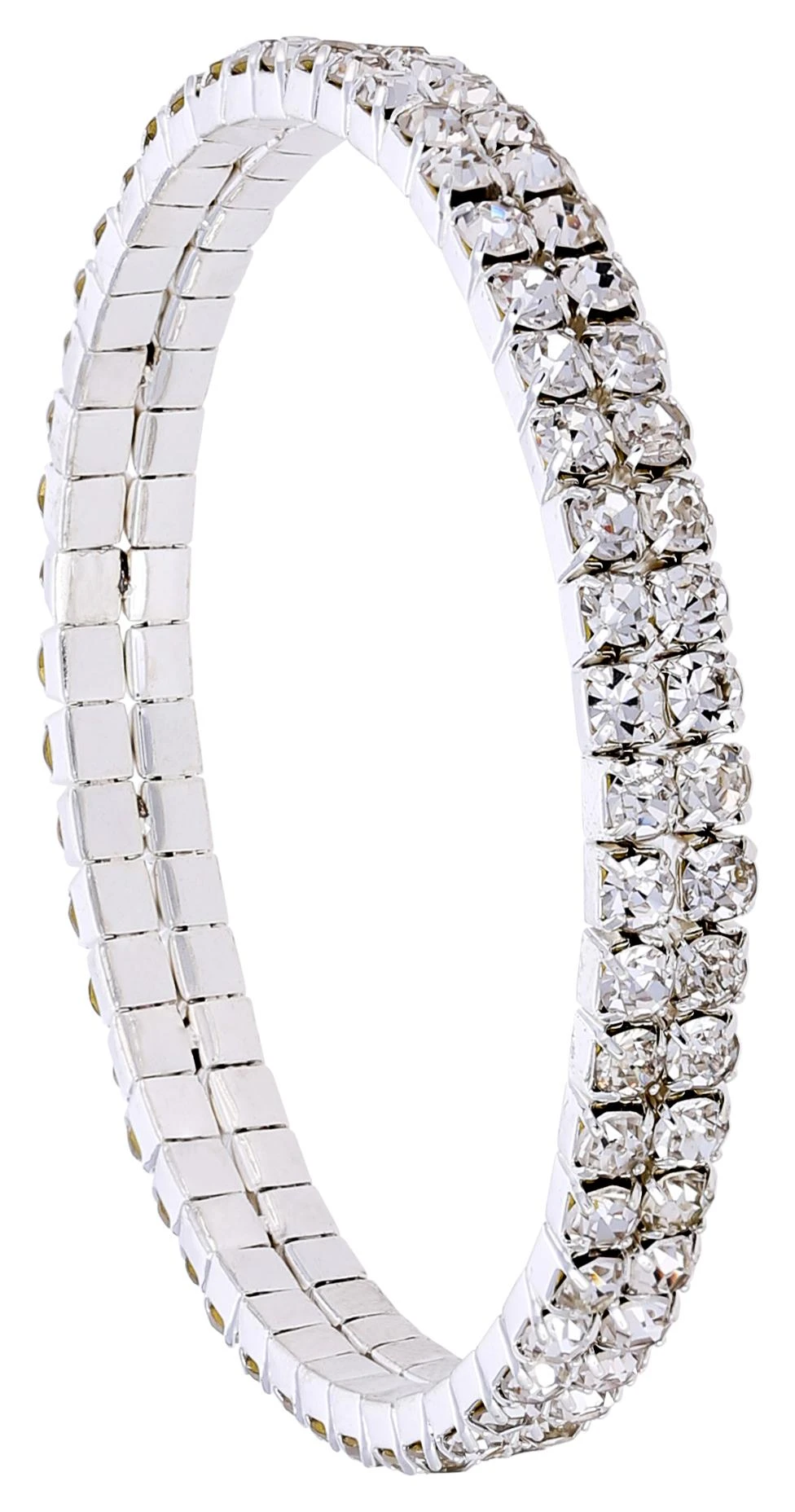 Es glĂ€nzt und glitzert – dieses silberfarbene Armband aus zwei Reihen Strass ist elastisch und passt sich so jedem Handgelenk an. Ein funkelndes SchmuckstĂŒck fĂŒr einen glamourösen Auftritt, der mit Sicherheit alle Blicke auf sich ziehen wird.