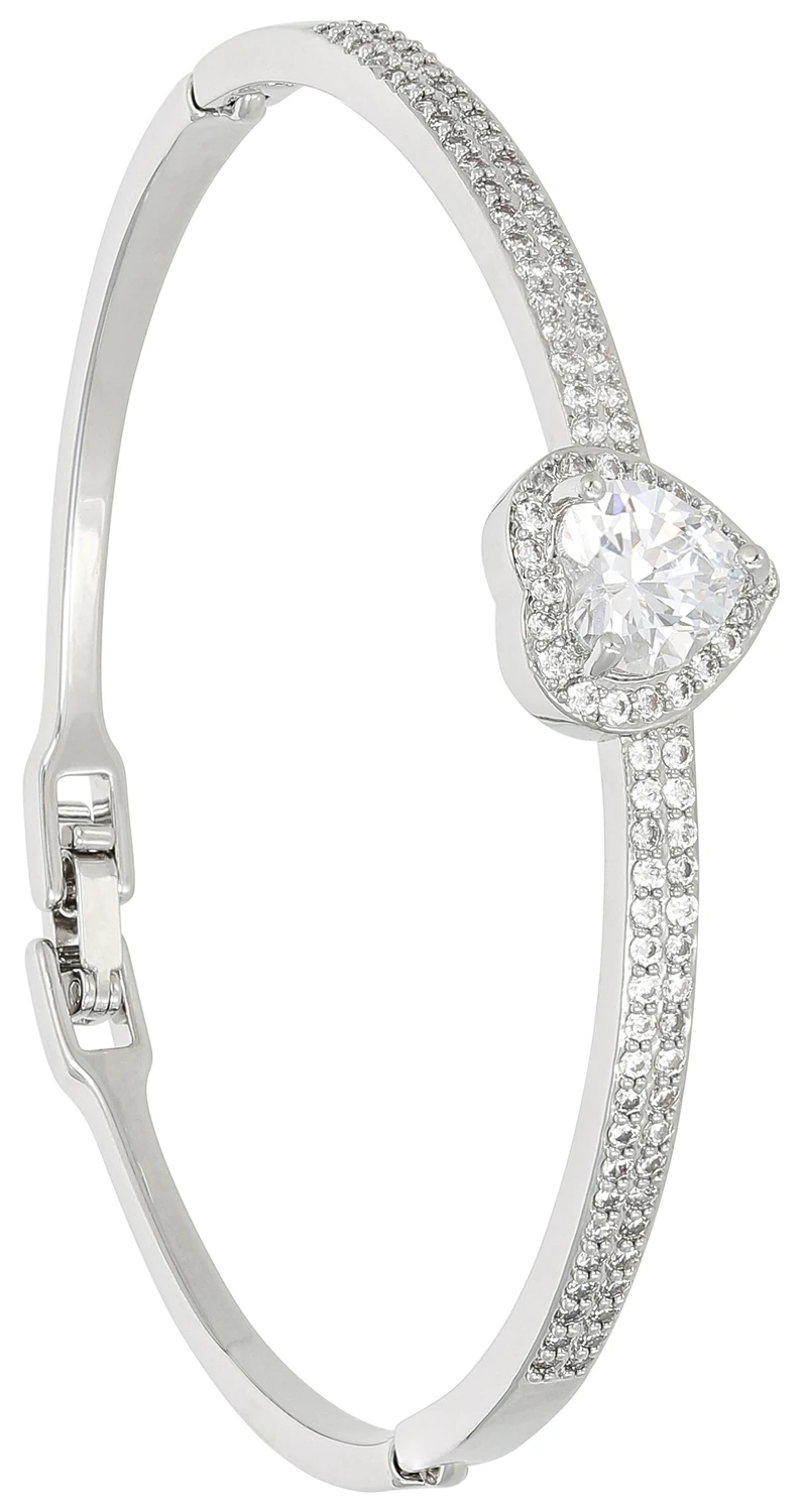 Der Armreif – Big Heart in der Farbe Silber ist mit Cubic Zirkonia-Steinen verziert und hat eine Herzform. Im Online-Shop von Bijou Brigitte zu finden!
