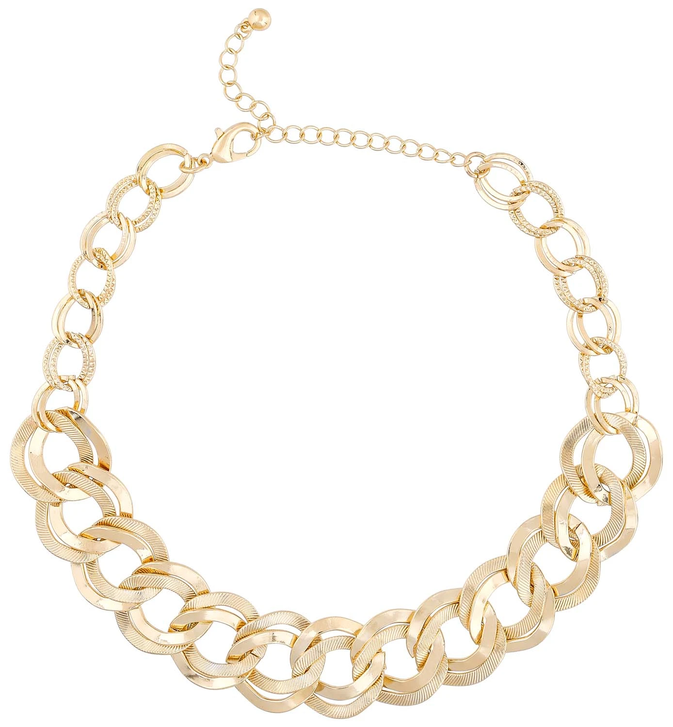 Der Choker – Chunky Gold schimmert goldfarben und ist in der Form einer Gliederkette. Der Choker hat eine VerlĂ€ngerungskette.