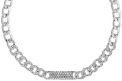 Der Choker – Cute Strass schimmert silberfarben und ist in der Mitte mit vielen, kleinen Strasssteinen verziert. Der Choker besteht aus einer Panzerkette und hat eine Verlängerungskette, sodass er sich individuell verstellen lässt.