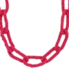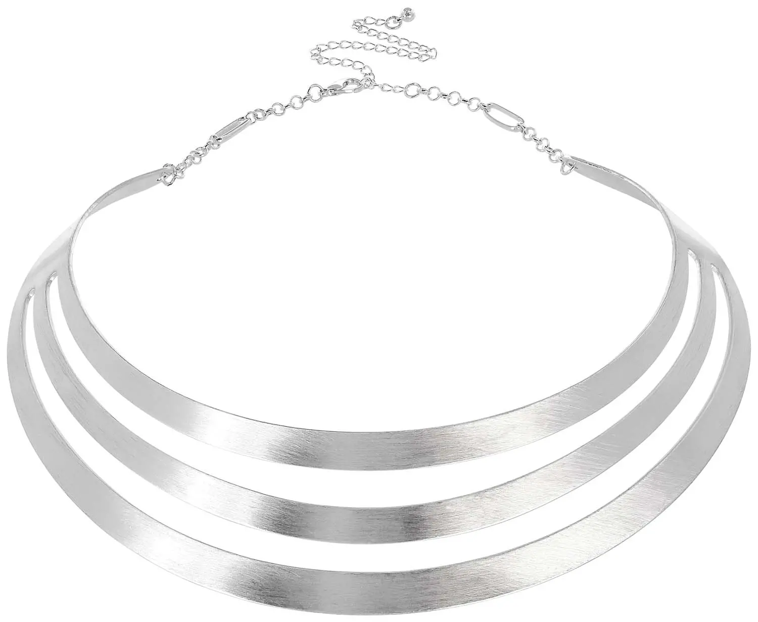 Der Choker – Silver Rows schimmert silberfarben und besteht aus einem harten Metall und hat eine VerlĂ€ngerungskette. Die OberflĂ€che ist versilbert und die Kette ist in drei unterschiedliche Reihen aufgeteilt.