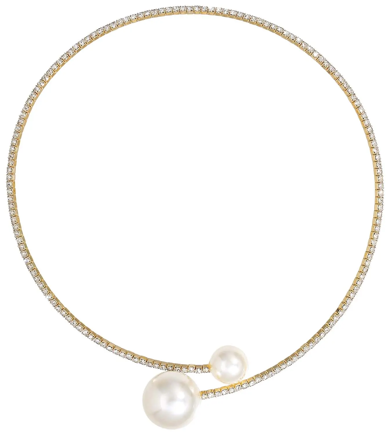 Der Choker – Sparkling Classic schimmert goldfarben und hat eine flexible Ă–ffnung an der Vorderseite, sodass sich der Choker individuell anpassen lässt. Die Ă–ffnung ist mit glänzenden, weiĂźen Kunstperlen verziert.