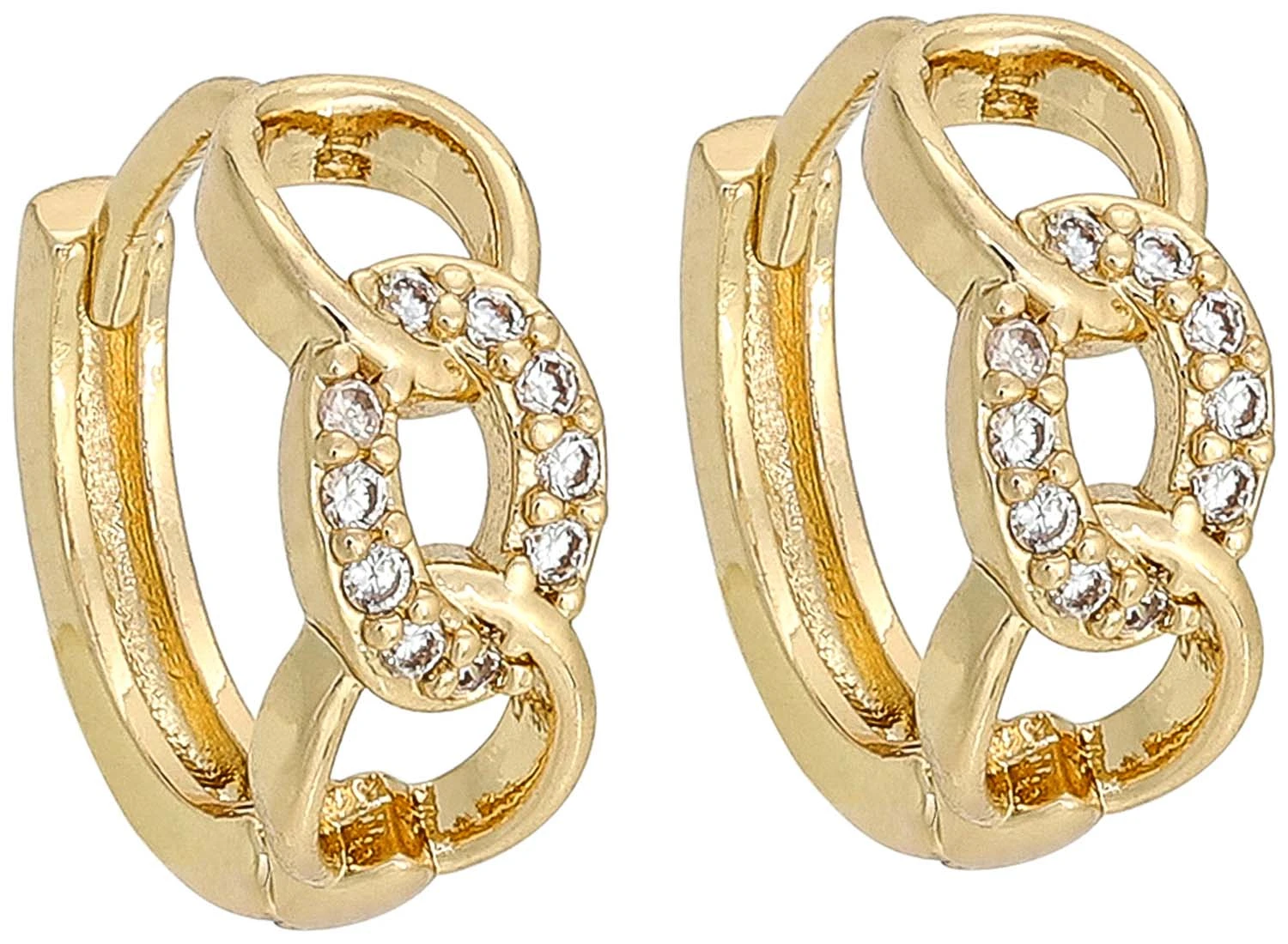 Die Creolen – Cute Chain schimmern goldfarben und sind mit Cubic Zirkonia Steinen verziert. Die Creolen sind klein und haben die Form einer Kette. Durch das klassische Design lassen sich die Creolen zu jedem Outfit kombinieren.