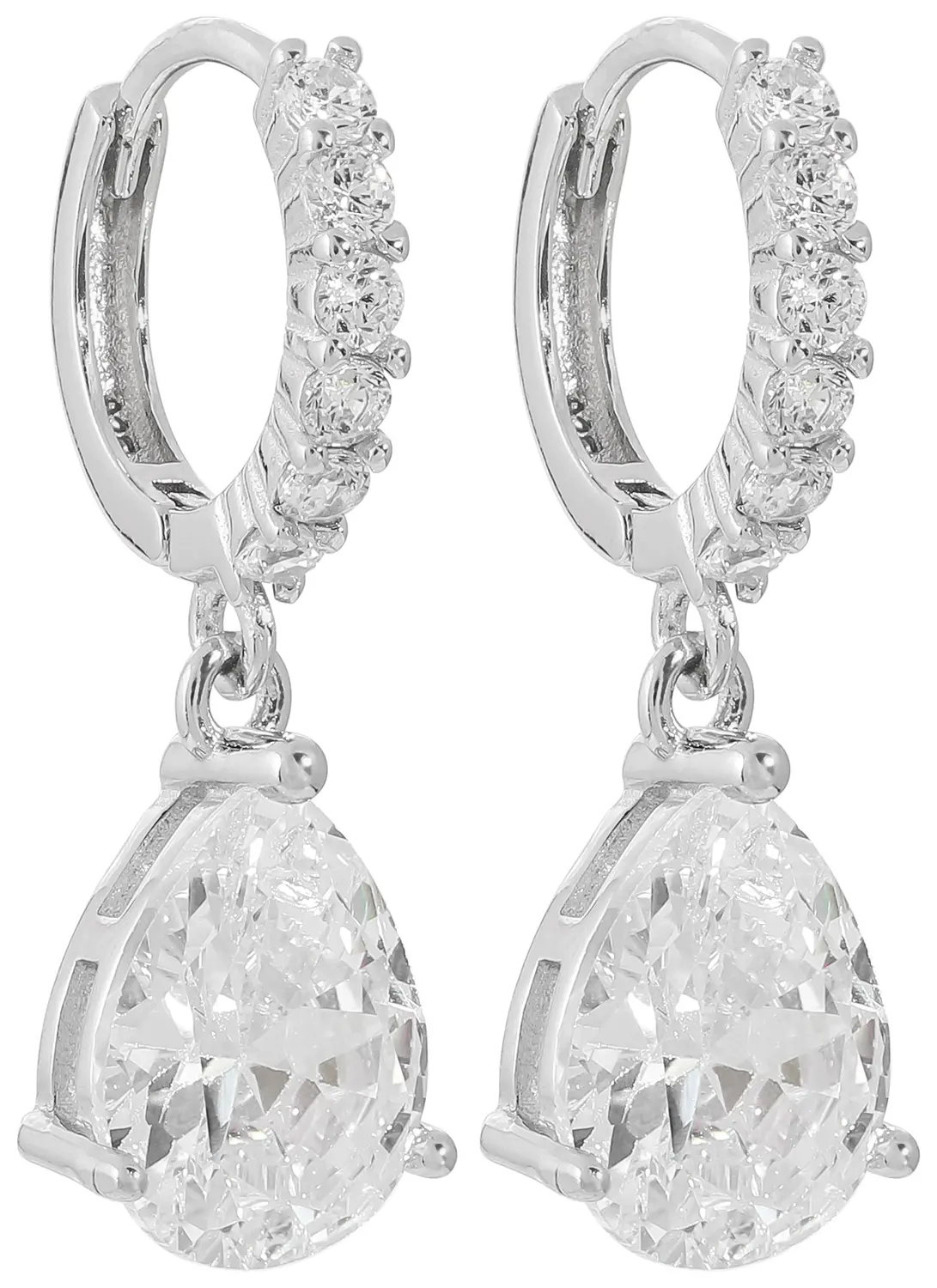 Die Creolen – Exclusive Drop schimmern silberfarben und sind mit Cubic Zirkonia Steinen geschmĂŒckt. Der AnhĂ€nger hat eine Tropfenform und besteht ebenfalls aus einem Cubic Zirkonia Stein. Die Creolen bestehen aus 925er Echtsilber und sind rhodiniert.