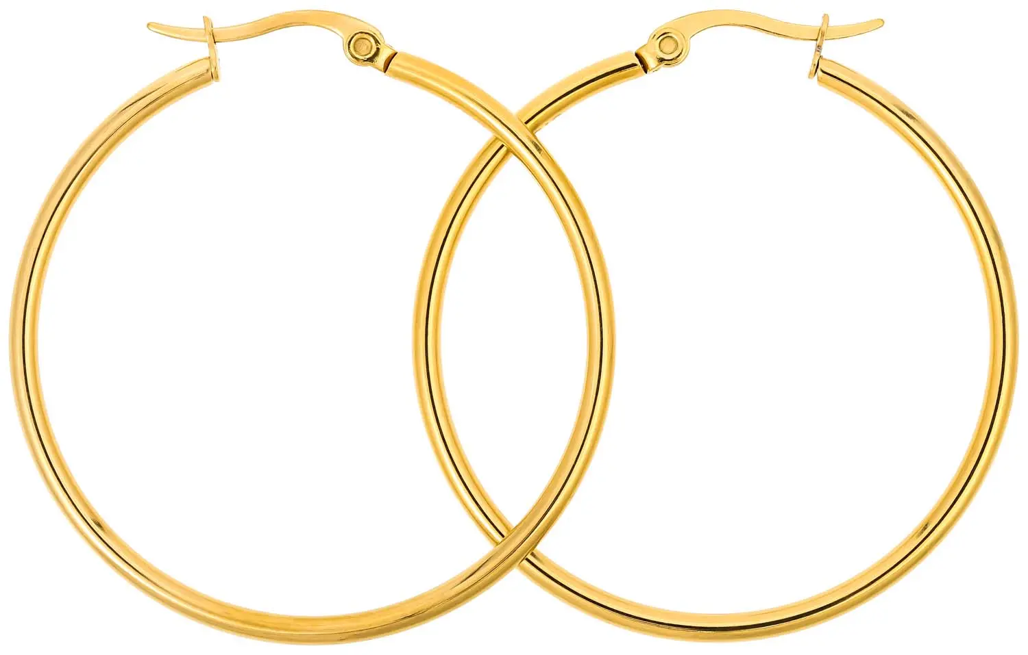 Die Creolen – Golden Essential schimmern goldfarben und bestehen aus Edelstahl, weshalb sie gegen das Anlaufen von Wasser geschĂŒtzt sind. Diese klassischen Creolen sind ein wahres Must-Have, denn sie lassen sich zu unzĂ€hligen Looks kombinieren.