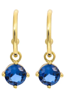 Die Creolen – Royal Circle schimmern goldfarben und bestehen aus 925er Echtsilber. Der Anhänger funkelt blau und besteht aus einem wunderschönen Cubic Zirkonia Stein. Die Creolen sind vergoldet.