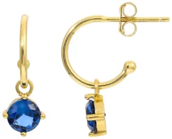 Die Creolen – Royal Circle schimmern goldfarben und bestehen aus 925er Echtsilber. Der Anhänger funkelt blau und besteht aus einem wunderschönen Cubic Zirkonia Stein. Die Creolen sind vergoldet.