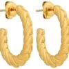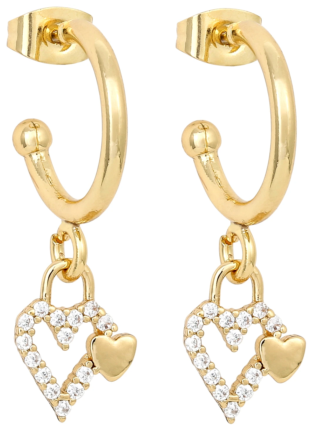 Die Creolen – Sparkling Hearts sind vergoldet und in der Form von zwei Herzen. Das eine Herz ist jeweils mit Zirkonia Steinen verziert.