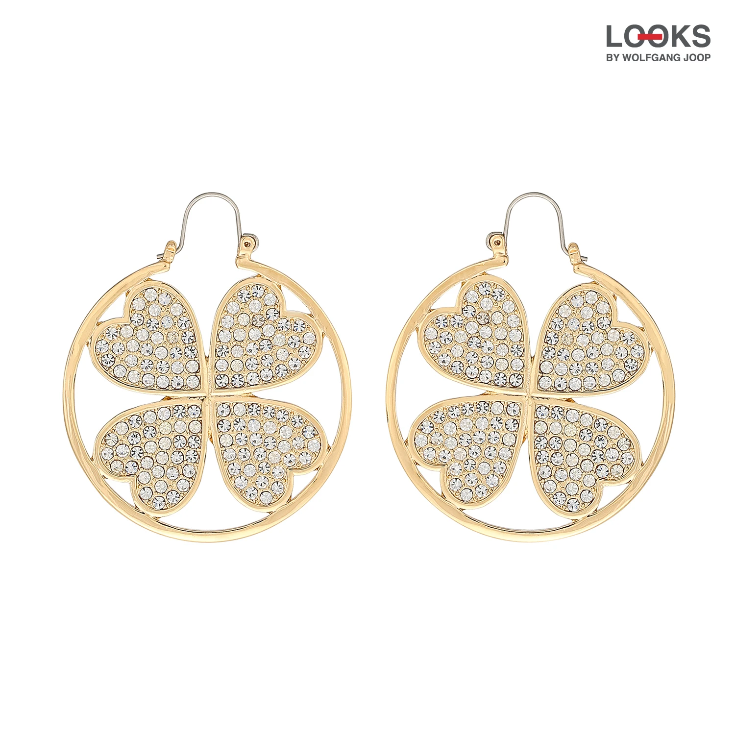 Die Creolen – Sparkling Luck funkeln in goldfarben und sind mit einem strasssteinbesetzten Kleeblatt verziert.