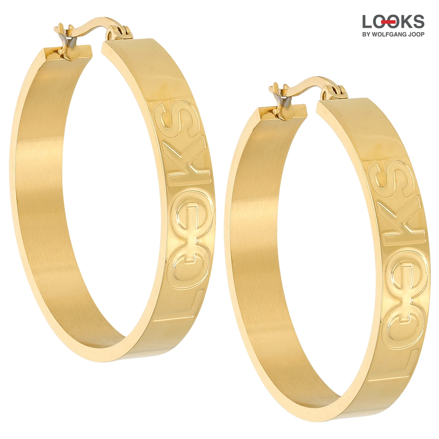 Die Edelstahl Ohrringe – Looked Upon in der Farbe Gold haben die Aufschrift „LOOKS“. Jetzt im Online-Shop von Bijou Brigitte zu entdecken!