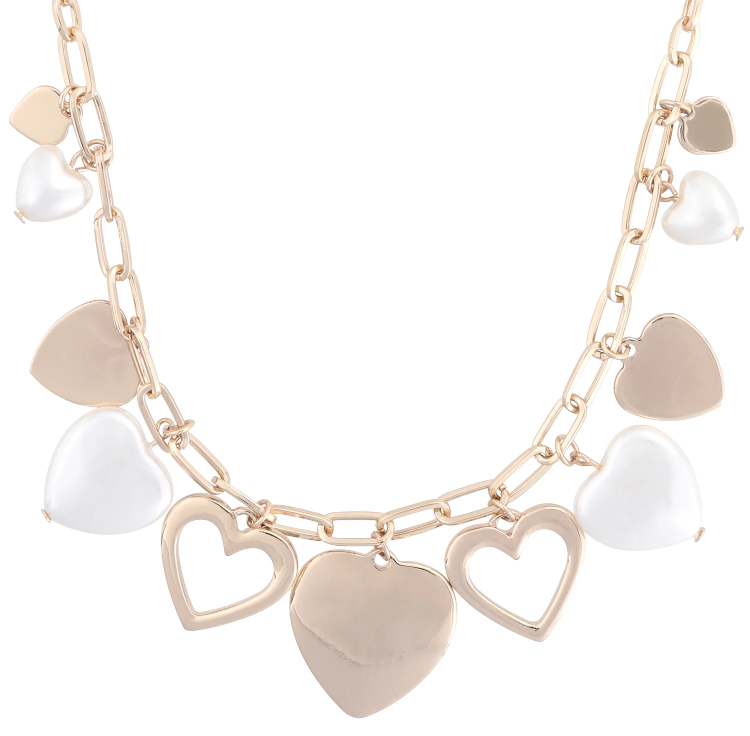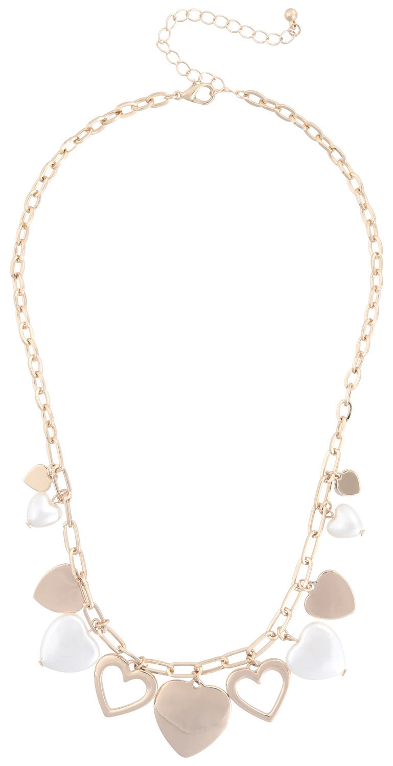 Die Kette – Adorable Heart in der Farbe Gold besteht aus einer Gliederkette und Herz-Anhängern in Gold und WeiĂź.