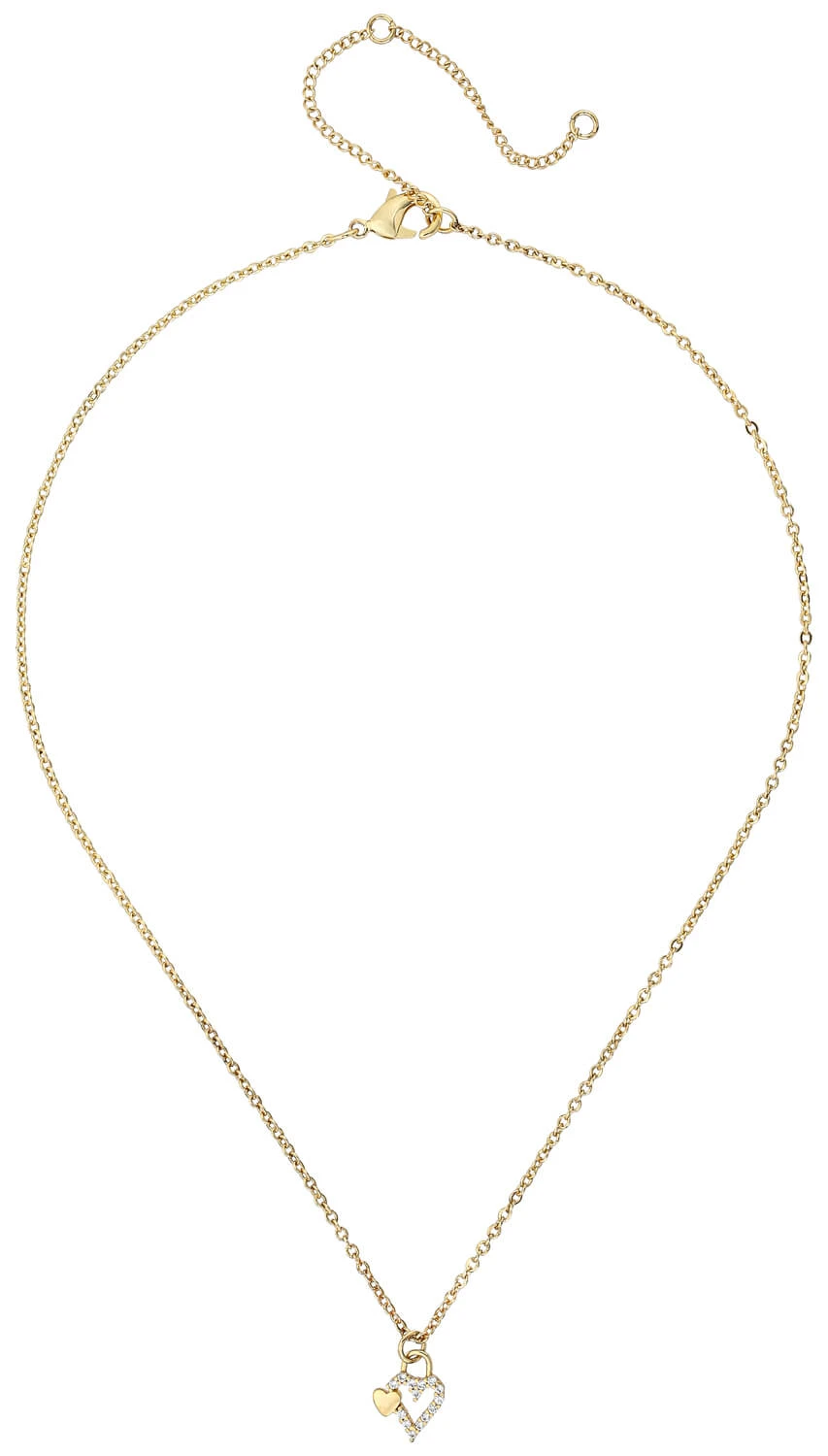 Die Kette – Brilliant Hearts ist vergoldet und eine Gliederkette. Die Kette ist mit einem Anhänger verziert, der aus zwei Herzen und zum Teil mit Zirkonia Steinen verziert ist.