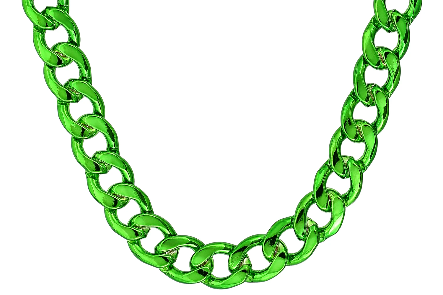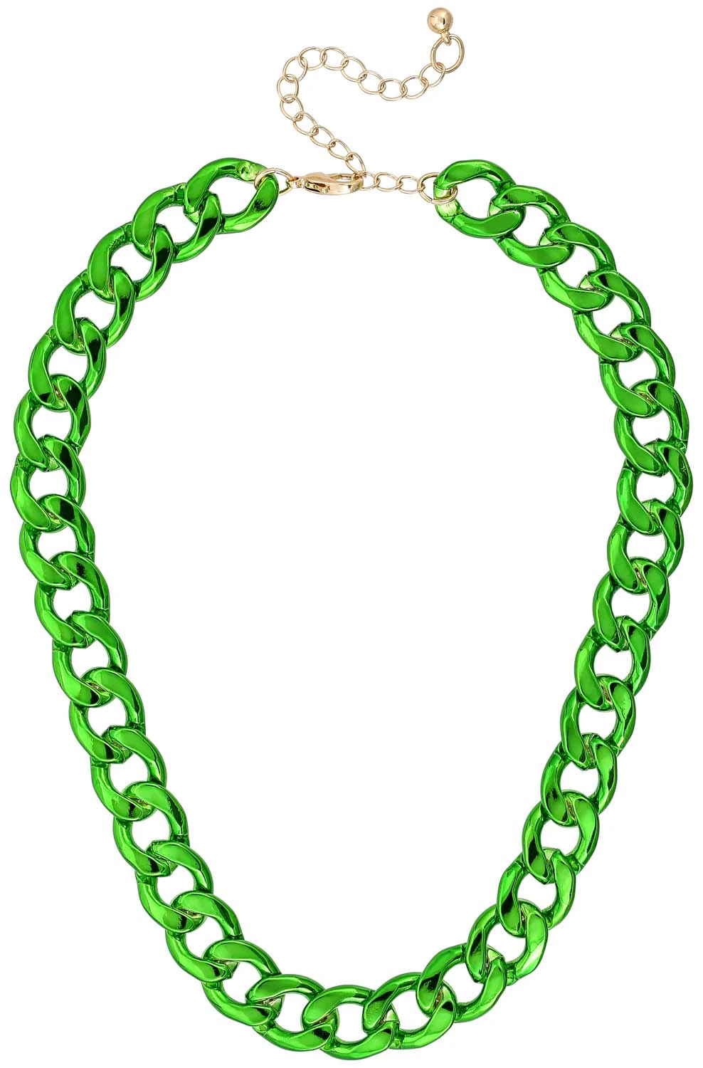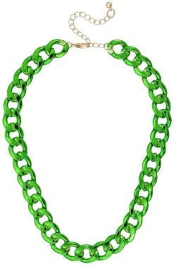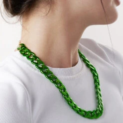Die Kette – Chunky Green schimmert grĂĽn und hat einen Metallic-Look. Die Kette ist eine Panzerkette und ist ein echtes Statement. Die Kette besitzt eine Verlängerungskette und lässt sich toll zu schlichten Outfits kombinieren.
