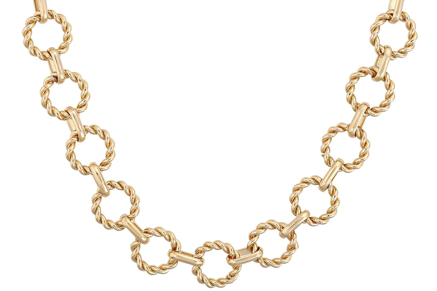 Die Kette – Classic Gloss schimmert goldfarben und hat die Form einer Ankerkette. Die Glieder der Kette haben teilweise eine gedrehte Optik. Die Kette ist das perfekte, klassische Accessoire und lässt sich perfekt mit weiterem Schmuck kombinieren.