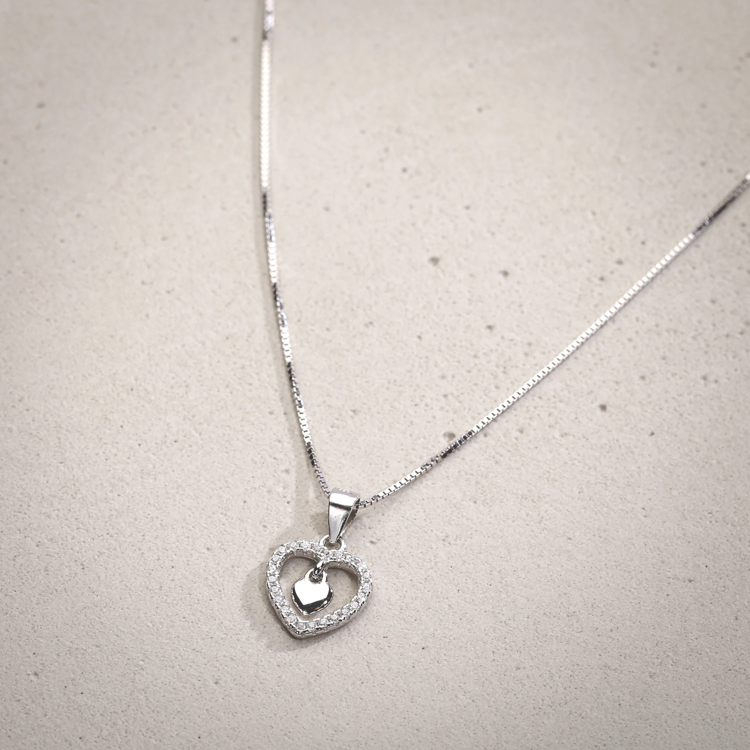 Der wunderschöne HerzhÀnger verziert mit Cubic Zirkonia-Steinen, wird von einer Schlangekette aus 925er Echtsilber begleitet.