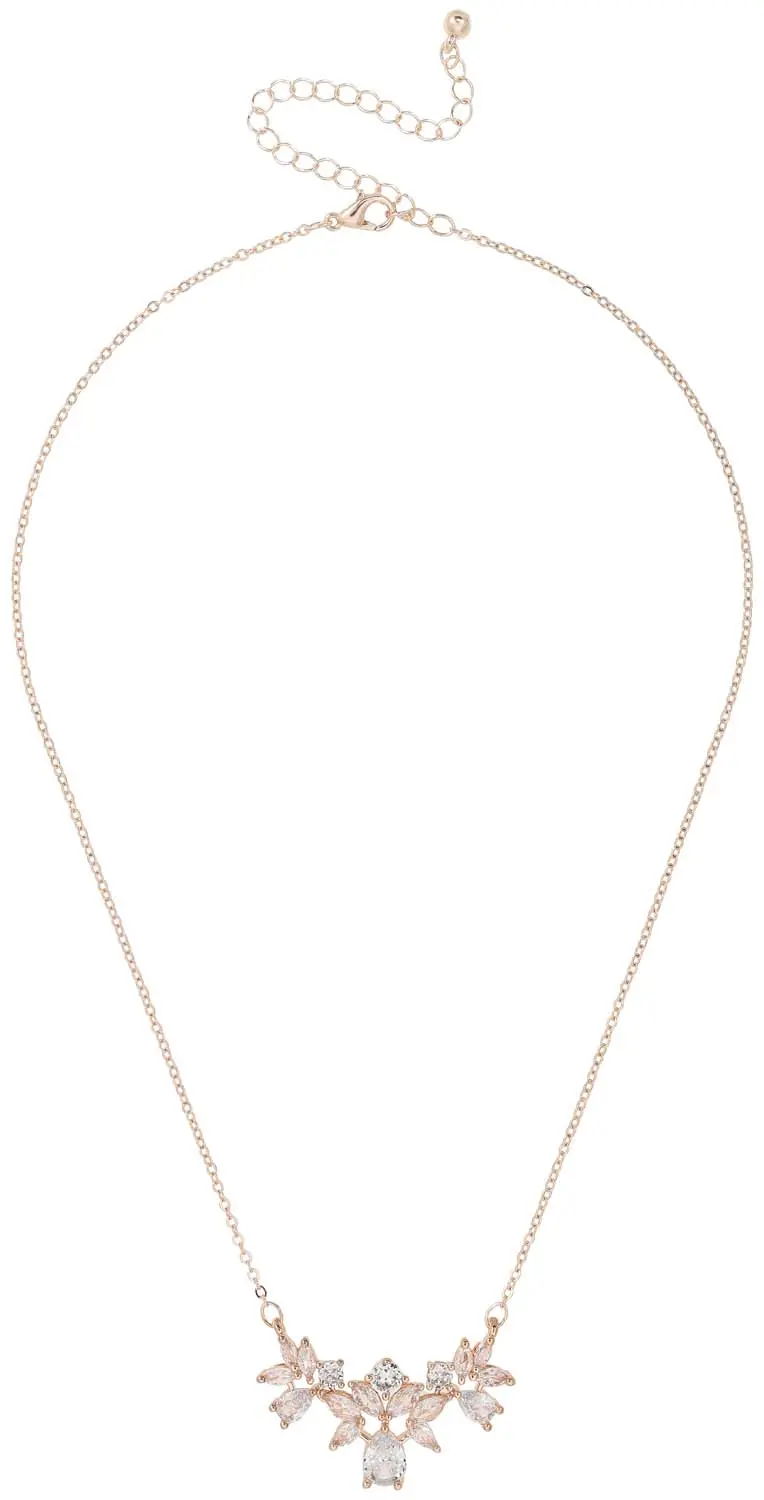 Die Kette – Floral Romantic schimmert rosĂ©goldfarben und ist mit floralen, funkelnden Cubic Zirkonia Steinen verziert. Die Gliederkette hat eine Verlängerungskette.