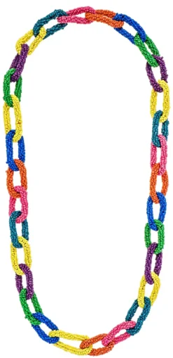 Die Kette – Magical Colours besteht aus vielen pinken Glasperlen, die ineinander verflochten sind. Die Glasperlen bilden einzelne Glieder, welche miteinander zusammenhängen und somit einer Ankerkette ähneln. Die Kette ist ein wahres Statement Accessoire und zieht alle Blicke auf sich.
