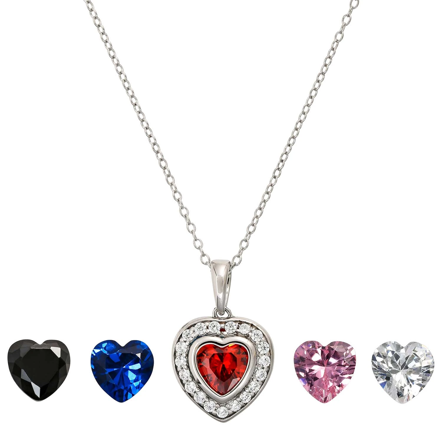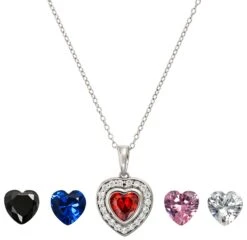 Diese besondere Kette aus 925er Echtsilber hat einen wunderschönen Anhänger in Herzform. Das bunte Herz in der Mitte ist ca. 0,7 cm groß und ist von weißen Zirkonia umrandet. Der bunte Herzstein lässt sich austauschen. So kann die Trägerin die Farbe individuell auf ihr Outfit abstimmen. Die Farben reichen von Weiß, Rosa, Rot, Dunkelblau bis Schwarz.