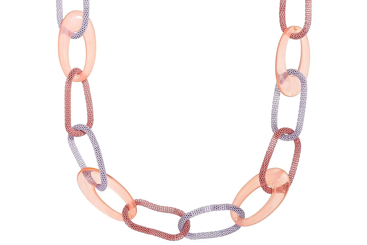 Die Kette – Pastel Statement besteht aus vielen, groĂźen Gliedern die verschiedene Materialien und Farben haben. Alle haben Pastelltöne und bestehen aus Kunststoff oder Ketten. Die Kette ist ein echtes Statement-Accessoire.
