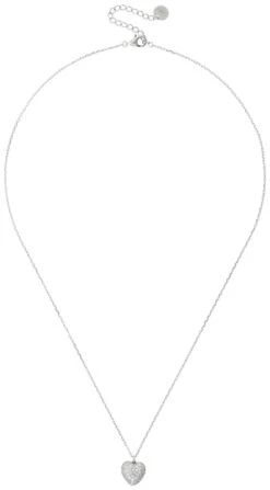Die Kette – Shiny Surprise funkelt in silberfarben, sie besteht aus 925er Echtsilber und ist rhodiniert. Die Kette wird von einem Amulett in Herzform verziert, im Inneren befindet sich eine Perle.
