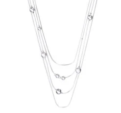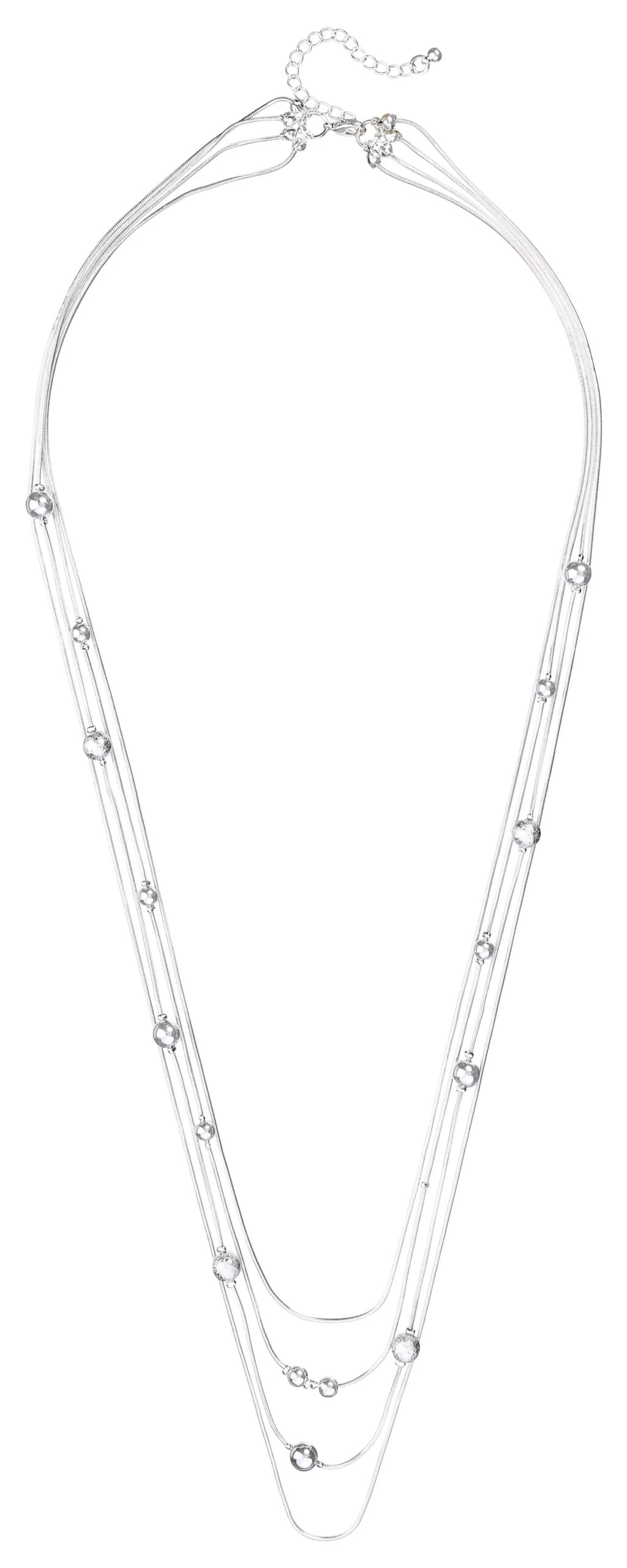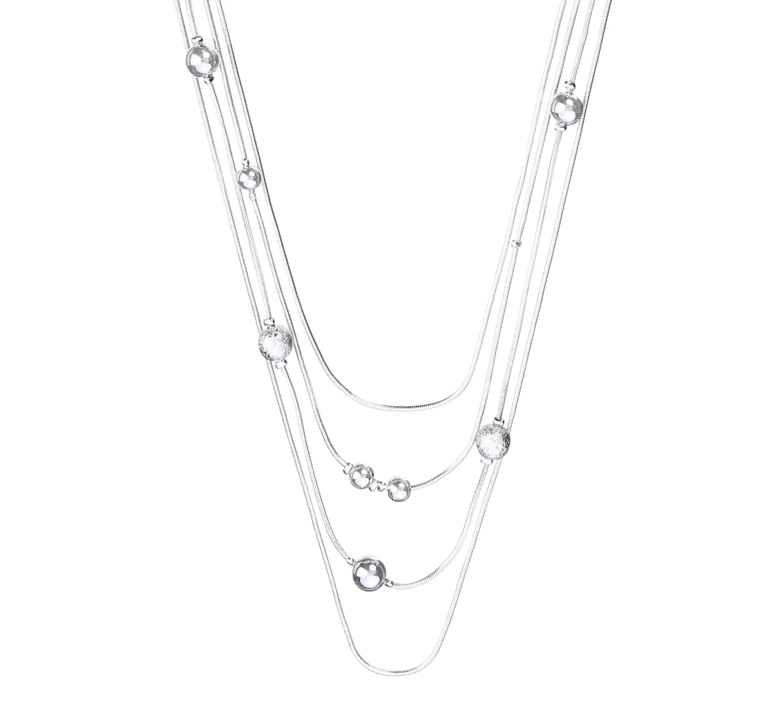 Material: Silberfarbene, lange Kette aus vier Strängen, die mit polierten sowie diamantstrukturenen Kügelchen besetzt ist.