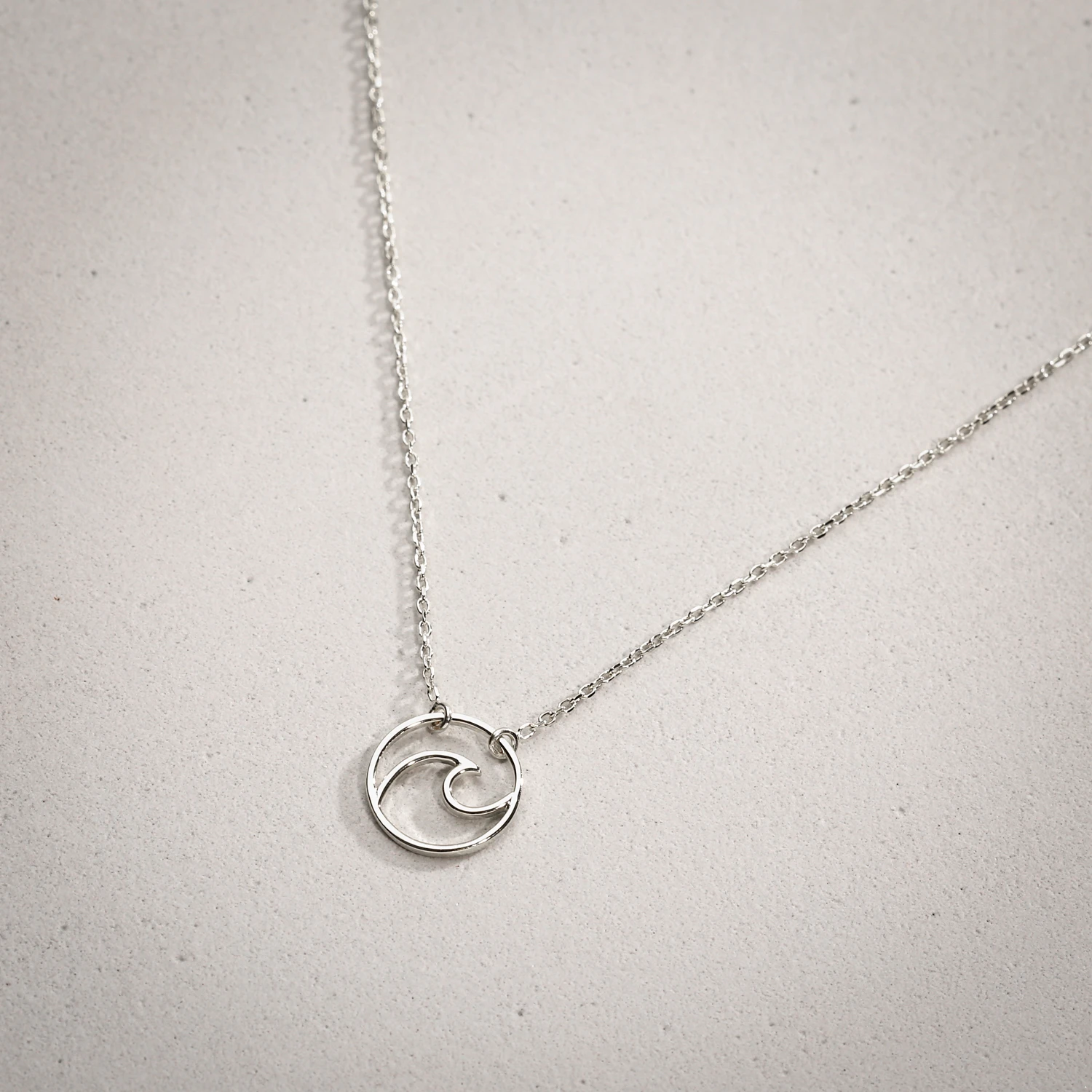 Eine filigrane Echtsilberkette mit einem runden Wellen AnhÀnger.