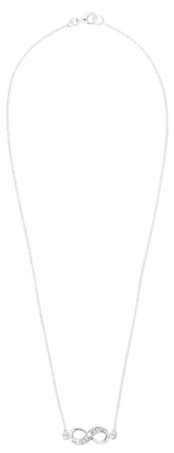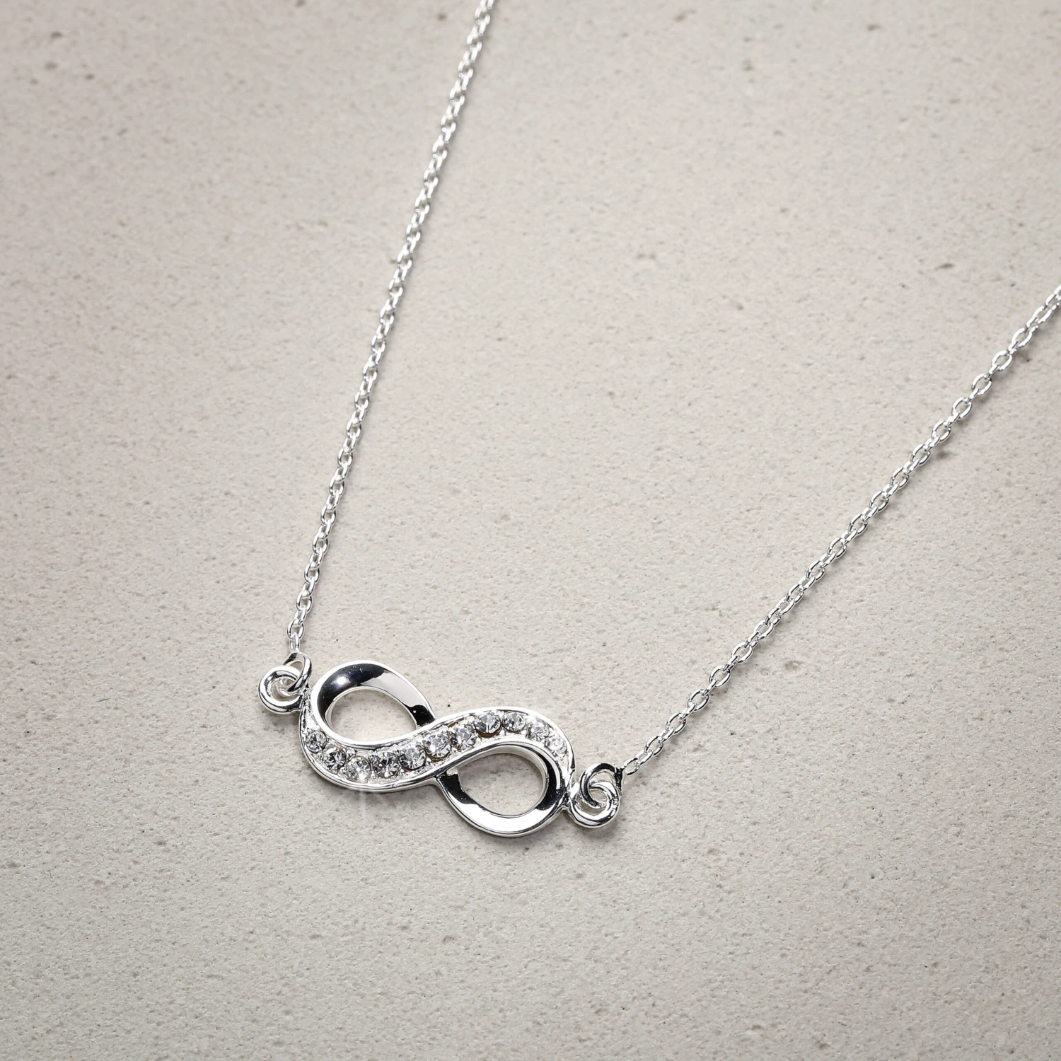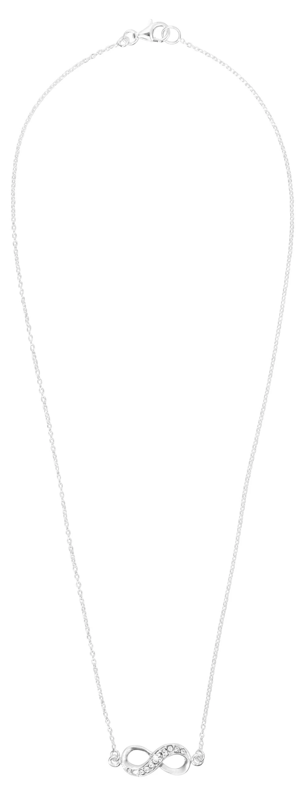 Material: Kette aus 925er Silber mit einem Unendlichkeitszeichen, welches mit zahlreichen Strasssteinen besetzt ist.
