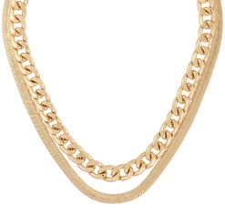 Das Ketten-Set – Romantic Gold schimmert goldfarben und besteht aus zwei Ketten. Eine Kette ist eine Gliederkette und die andere ist eine Schlangenkette.