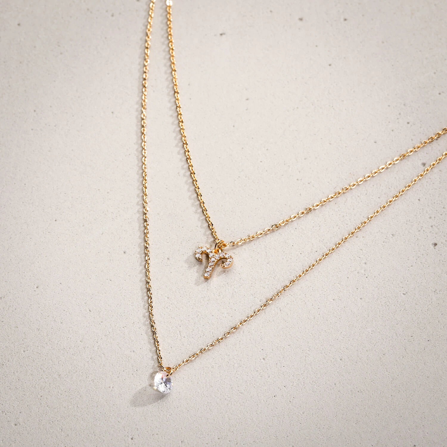 Die Layering-Kette – Golden Aries zeigt mit dem Sternzeichen-AnhĂ€nger und dem Schmuckstein elegant, dass man dem Sternzeichen Widder angehört. Mit funkelnden Cubic Zirkonia Steinen bezaubert die Kette im trendy Layering-Look.