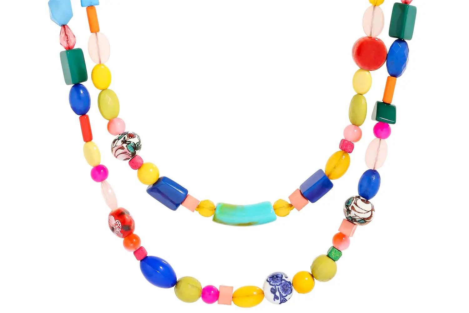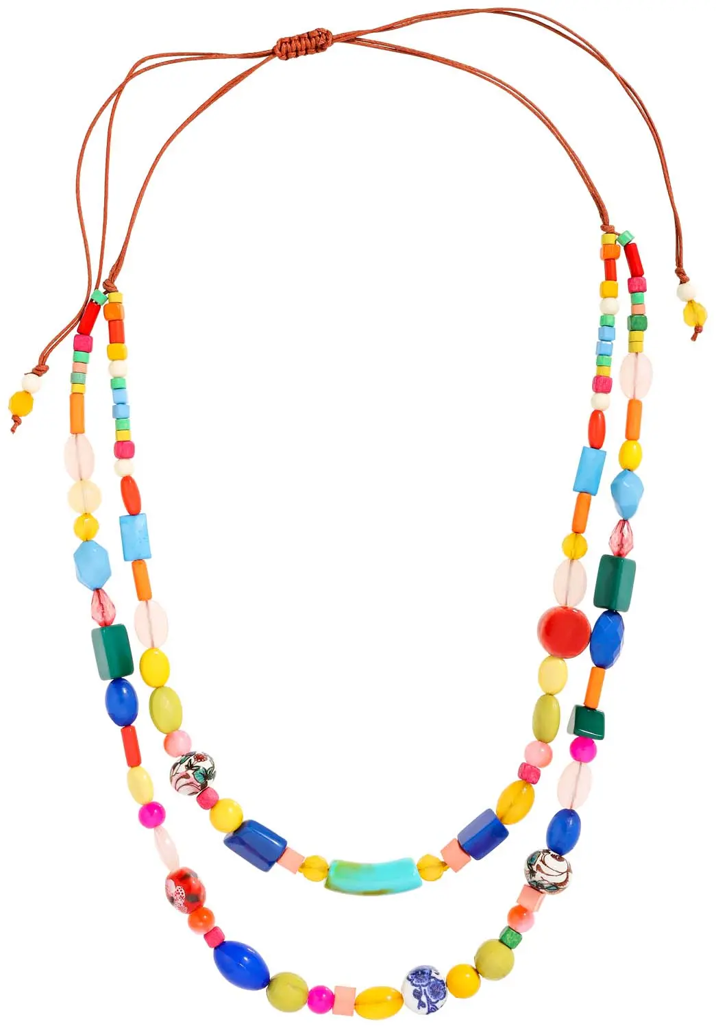 Die Layering Kette – Special Beads besteht aus zwei Reihen Ketten und ist ein echtes Statement-Accessoire. Beide Reihen sind mit Perlen verziert, die verschiedene Farben, Formen und Muster haben.