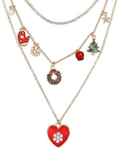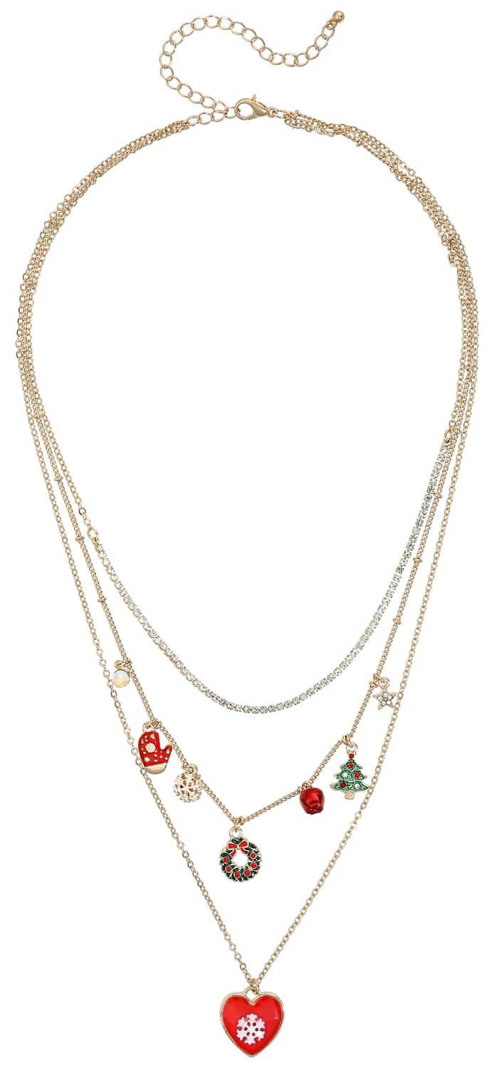 Die Layering Kette – Wonderful Christmas besteht aus drei Reihen Gliederketten und ist mit unterschiedlichen Anhängern im Weihnachtsdesign verziert.