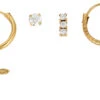 Das Ohr-Set – Sparkling Days besteht aus drei Paar Ohrsteckern, die mit Zirkonia Steinen verziert sind. Die Ohrstecker sind vergoldet.