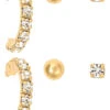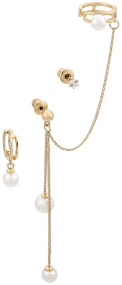 Das Ohr-Set – Hanging Pearls ist ein dreiteiliges Set, bestehend aus einer Creole mit einem Perlenahänger, einem Ohrstecker mit einem Stein aus Cubic Zirkonia und einem Ohrstecker mit verbundenem Earcuff, welcher zusätzlich mit Gliederketten und Perlen beschmĂĽckt ist.