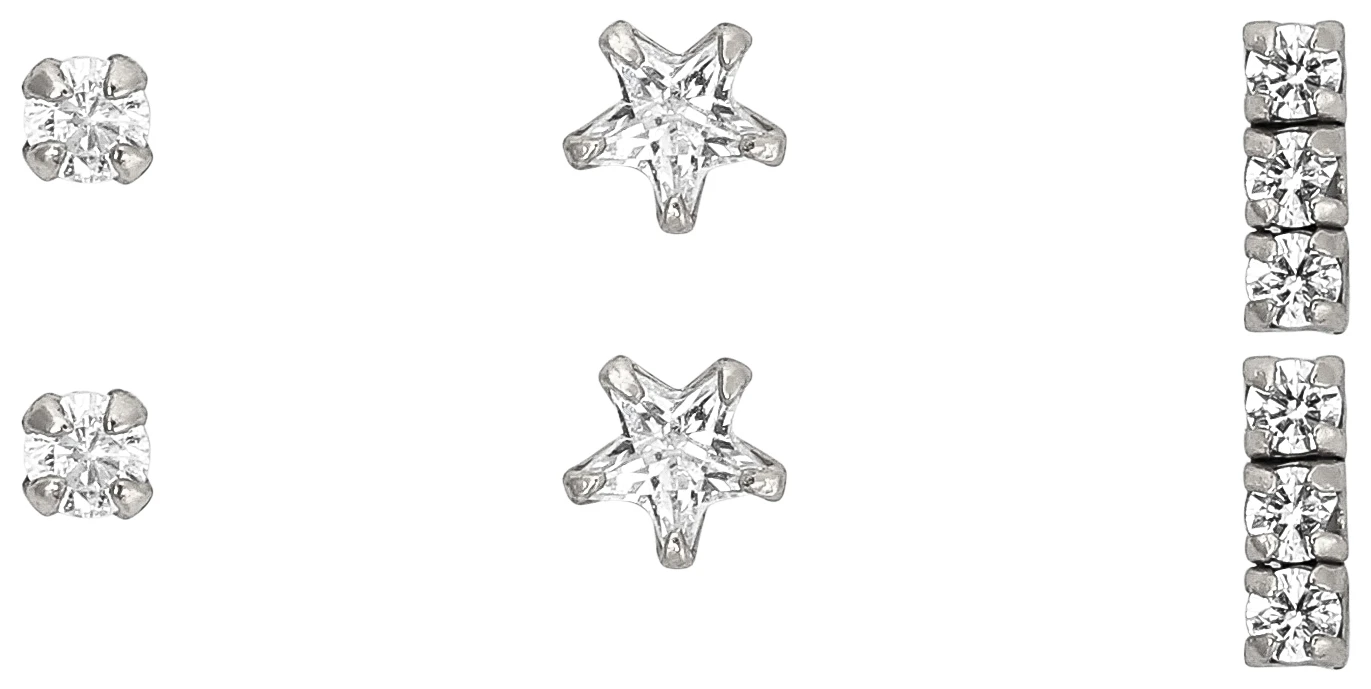 Das Ohr-Set – Sparkling Star besteht aus drei Ohrsteckern, die aus 925er Echtsilber bestehen und mit Cubic Zirkonia Steinen verziert sind.