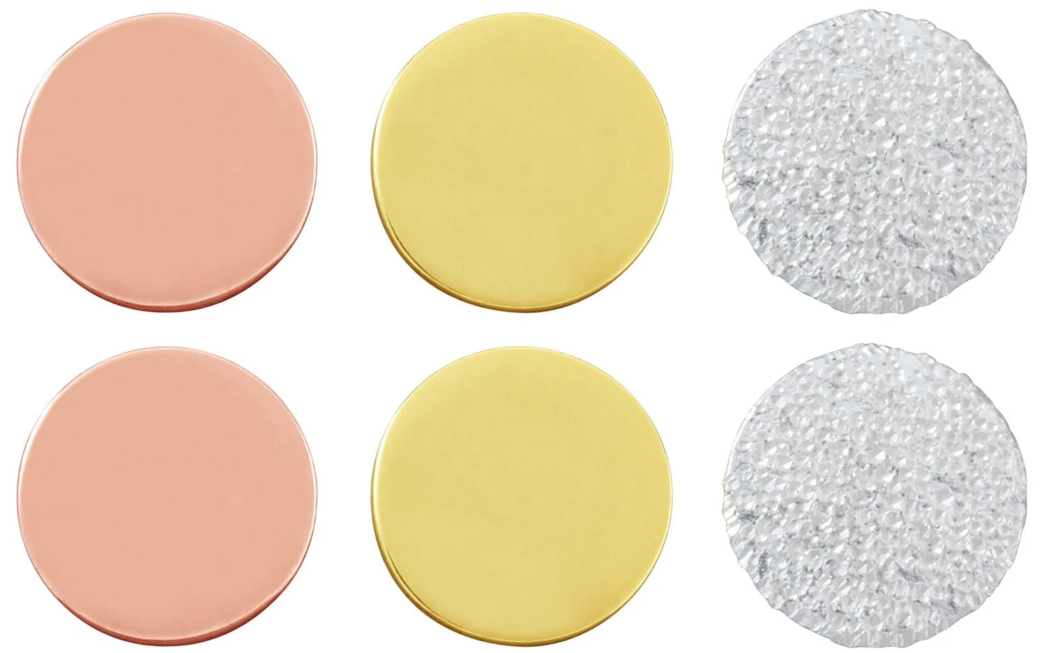 Material: 3er Set Ohrstecker in Kreis-Form aus 925er Silber in verschiedenen Plattierungen. Ein Paar ist silber mit rauer OberflÀche, eines goldplattiert und eines kupferfarben.