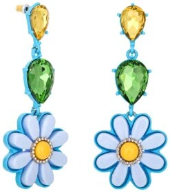 Die Ohrstecker – Fabulous Flower haben eine blaue Beschichtung und sind mit tropfenförmigen Strasssteinen in gelb und grĂĽn versehen. Zusätzlich schmĂĽckt jeweils eine blaue Blume die Ohrstecker mit einem gelben Blumenstempel und kleinen Strasssteinen ringsherum.