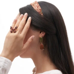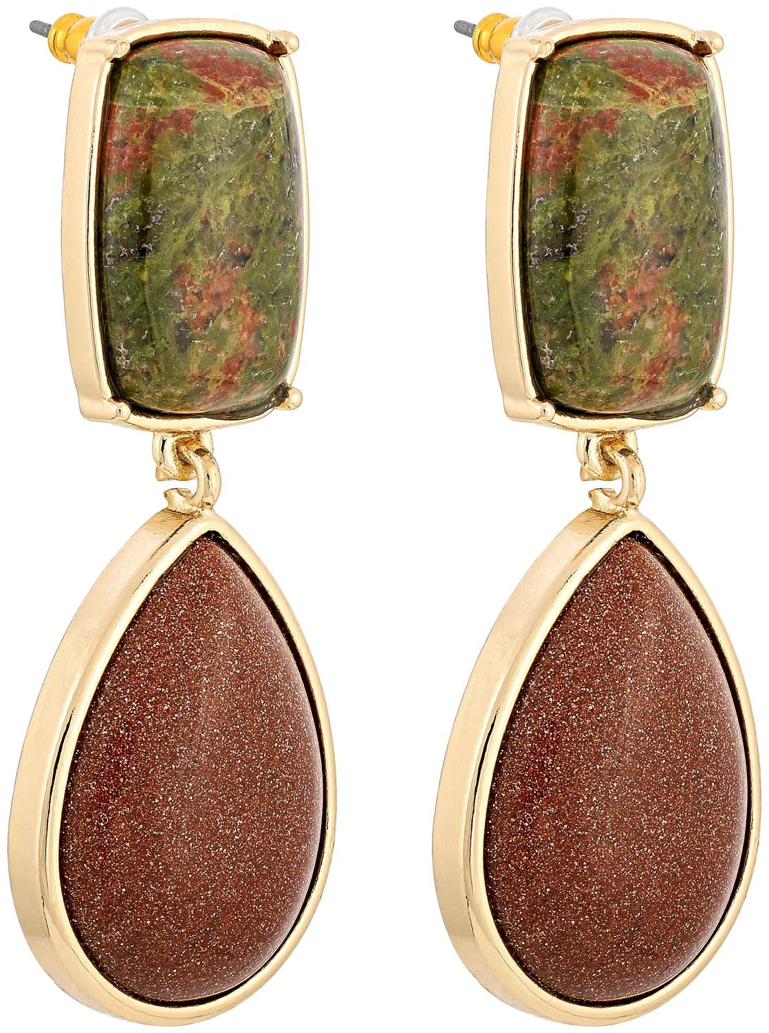 Die Ohrstecker – Nature Drop glänzen goldfarben und haben eine Tropfenform. Die Ohrstecker haben verschiedene Naturtöne, wie beispielsweise grĂĽn und braun. Die Ohrstecker sind mit einem Edelstein verziert.