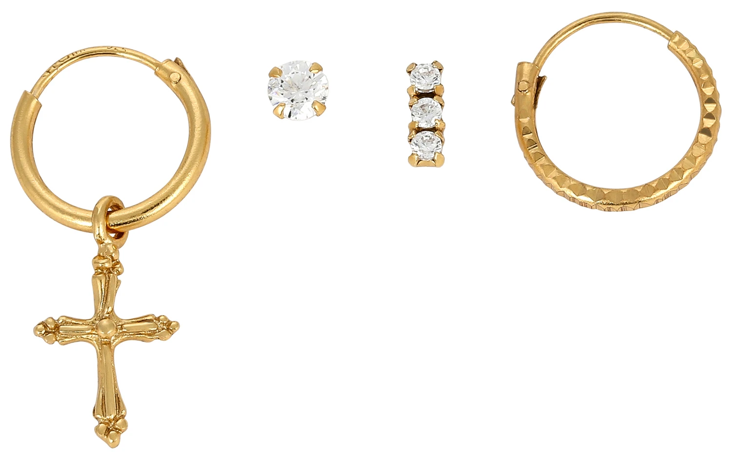 Ein wunderschönes 925er Echtsilber-Ohrstecker-Set in einem glänzenden Gold. Funkelnde Cubic Zirkonia schaffen ein tolles Design. Die Schmuckstücke passen ideal zu jedem Anlass und gestalten Ihr Outfit zu einem perfekten Look.