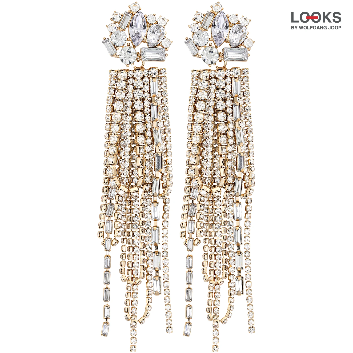 Die Ohrstecker – Strass Statement schimmern goldfarben und haben die Aufschrift „LOOKS“ auf der RĂŒckseite. Die Ohrstecker sind Wasserfall-Ohrringe, welche mit vielen Strasssteinen in unterschiedlichen Formen verziert sind. Jetzt entdecken in der LOOKS by Wolfgang Joop Kollektion von Bijou Brigitte!
