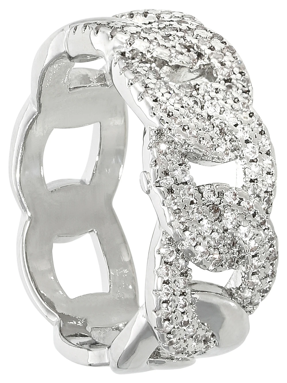 Der Ring – Crystal Chains in der Farbe Silber ist mit kleinen Cubic Zirkonia Steinen verziert und hat die Form von ineinander greifenden Gliedern.