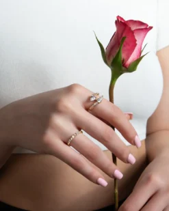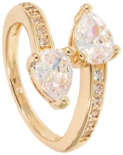 Der Ring – Double Drop schimmert goldfarben und ist mit funkelnden Cubic Zirkonia Steinen verziert. Die Cubic Zirkonia Steine auf der Vorderseite haben eine Tropfenform.