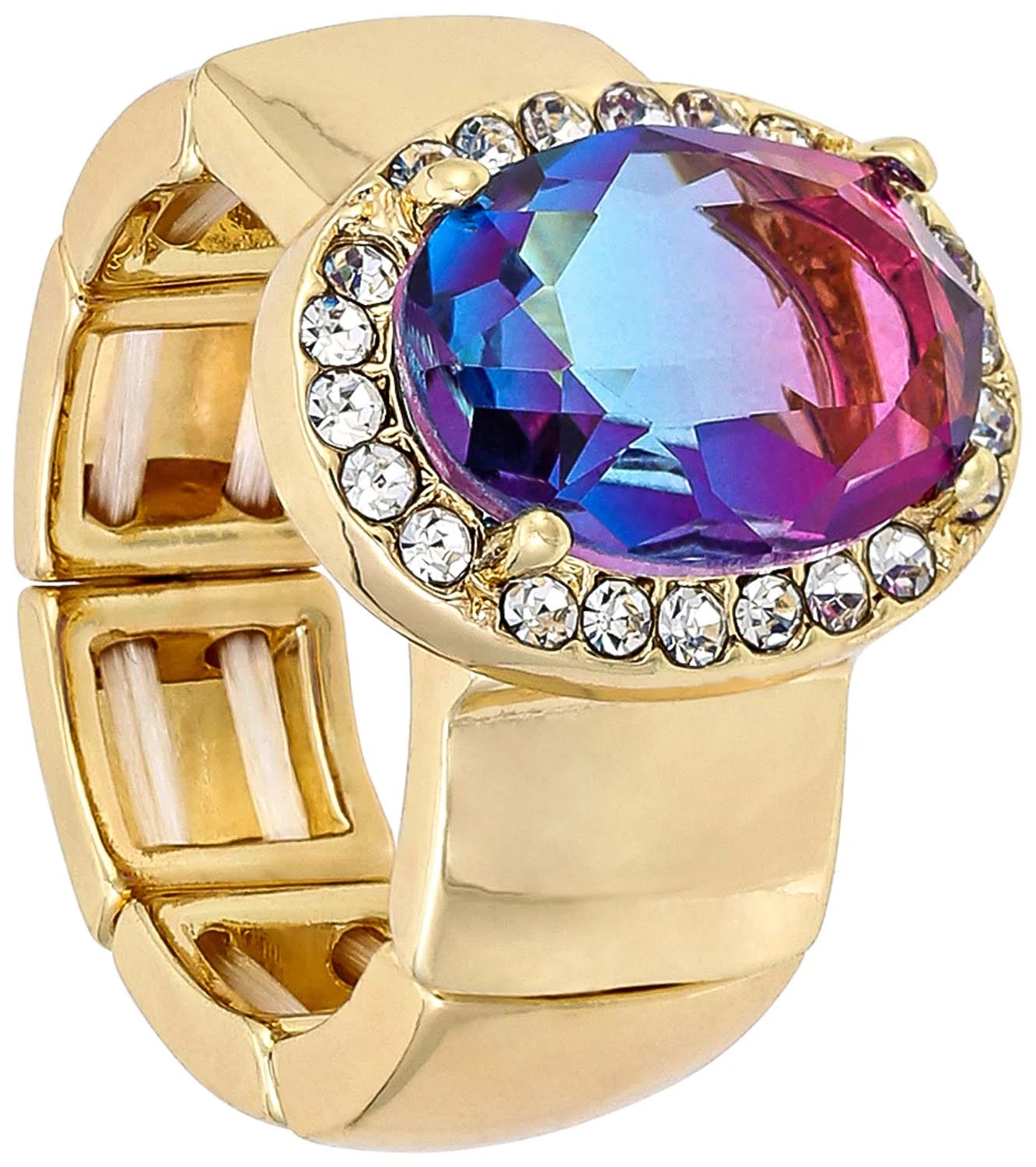 Der Ring – Fairy Sparkle schimmert goldfarben und ist mit kleinen, funkelnden Strasssteinen verziert. Der Ring ist oval und hat einen groĂen Strassstein in der Mitte, welcher blau und pink schimmert. Der Strassstein macht den Ring zu einem echten Statement.