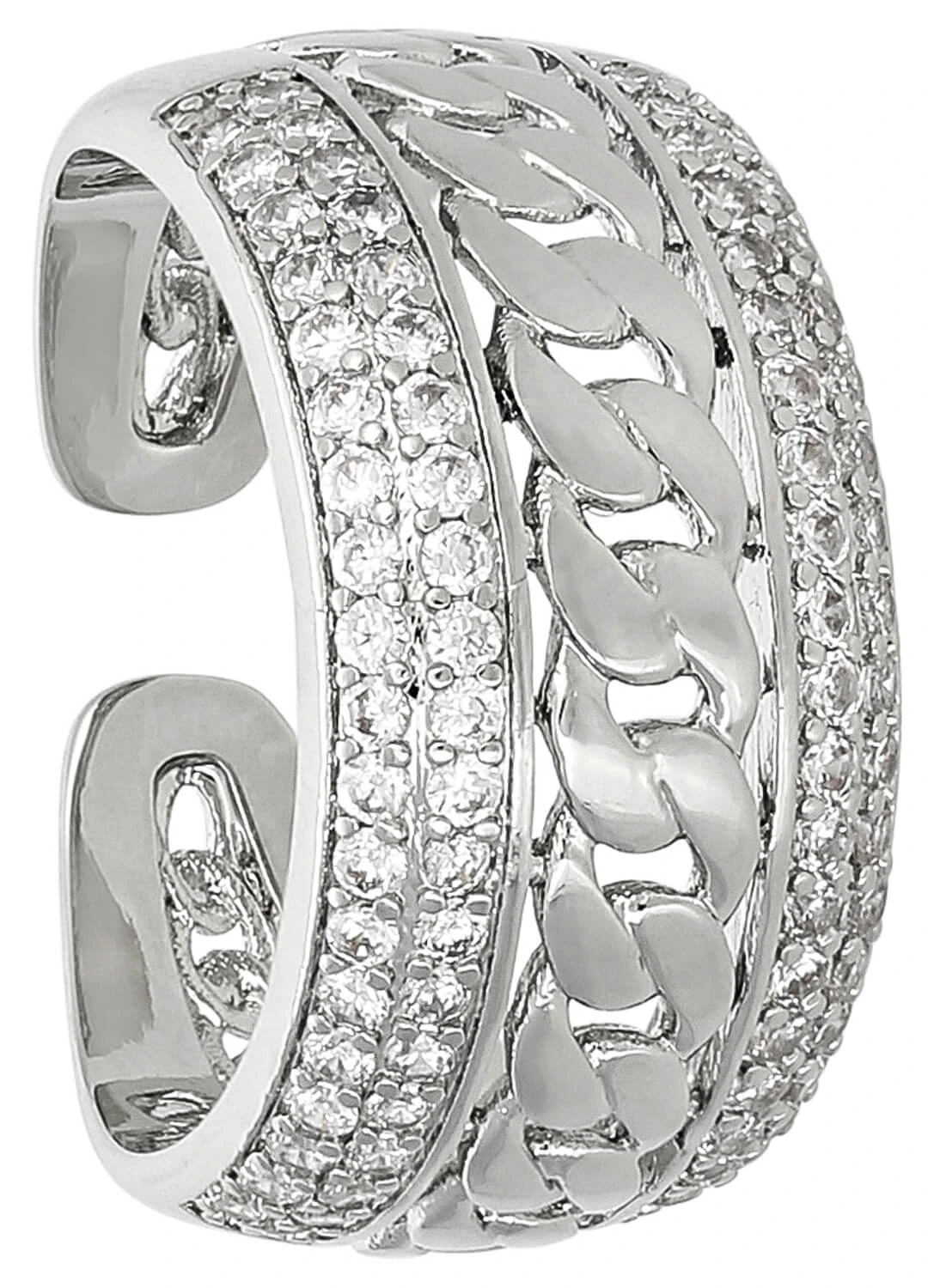 Der Ring – Open Ring besteht aus vier Reihen, welche mit Cubic Zirkonia Steinchen besetzt sind. Der Ring ist auf der Innenseite offen.